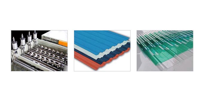 PC波浪板以其優(yōu)良的耐候性、抗沖擊性、及高透光性等優(yōu)良性能,廣泛應(yīng)用于倉(cāng)庫(kù)屋頂和簡(jiǎn)易建筑構(gòu)造物的頂棚,如:運(yùn)動(dòng)館、游泳池、滑雪場(chǎng)等室內(nèi)場(chǎng)館通道、車站休息亭等等,具有廣闊的市場(chǎng)前景。
