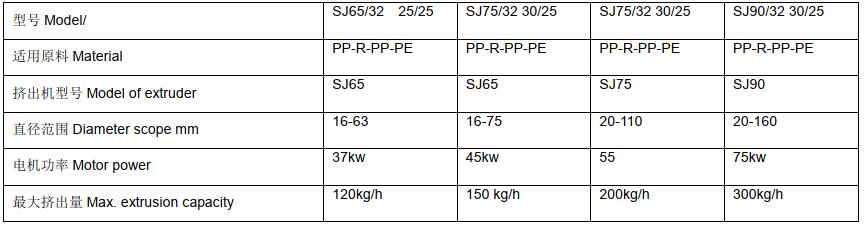 PP-R 冷熱水管生產(chǎn)線主要用于生產(chǎn)住宅供水系統(tǒng)-工業(yè)用水輸送-壓縮空氣運(yùn)輸?shù)确矫鎻V泛應(yīng)用的各種管徑-壁厚的管材。在國際管材發(fā)展史上,PP-R 是最新的推廣產(chǎn)品,具有價(jià)廉-無毒-無銹蝕-耐高溫-安裝方便等特點(diǎn)。該生產(chǎn)線是我公司引進(jìn)吸收國外先進(jìn)技術(shù)自行研制成功的新產(chǎn)品,其螺桿和機(jī)頭等關(guān)鍵部件均是按 PP-R 的特性專門設(shè)計(jì)的??刂齐娖鞑捎米冾l調(diào)速,主要電器部件采用進(jìn)口名牌產(chǎn)品;整條生產(chǎn)線具有產(chǎn)量高-質(zhì)量穩(wěn)定-制品誤差小等特點(diǎn),是當(dāng)今塑機(jī)行業(yè)中的一流設(shè)備。一機(jī)多用可生產(chǎn) HDPE 硅芯管,普通 PPR-PE-PEX 管材。 本公司均可提供工藝配方及交鑰匙工程。