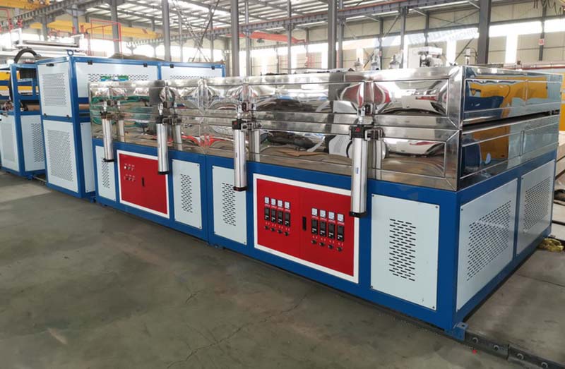 PP中空墊板瓶托板設(shè)備主要特點(diǎn),擠出機(jī)減速機(jī)與電機(jī)通過步軸器聯(lián)接,在生產(chǎn)過程中擠出機(jī)出量穩(wěn)定,沒有打滑產(chǎn)生的供料不穩(wěn)定的現(xiàn)象.配備雙工位不停機(jī)液壓換網(wǎng)器或4工位液壓換網(wǎng)器.冷卻定型平臺(tái)為獨(dú)立研發(fā),產(chǎn)量高,冷卻速度快,可達(dá)12米每分鐘.牽引機(jī)全部使用可調(diào)氣缸,生產(chǎn)每平方米180-200克產(chǎn)品時(shí)可調(diào)節(jié)雙輥之間的間距.